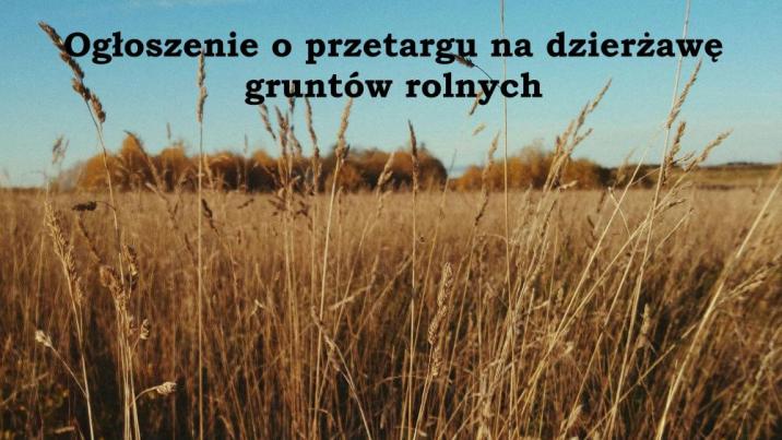 Ogłoszenie o przetargu na dzierżawę gruntów rolnych